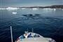 5. den: ZÁLIV DISKO BAY A VELRYBÍ SAFARI: Dnes vyrazíte opět do vod kolem Ilulissat. Záliv Disko Bay i přilehlý fjord jsou v létě domovem několika druhů velryb – zejména keporkaků, plejtváků myšoka a malého. Díky radiovému spojení s místními rybáři je úspěch mise téměř jistý. Dobrodružní jedinci mohou využít možnosti půjčit si kajak a vydat se do klidné vody fjordu v tradičním inuitském dopravním prostředku (fakultativně). Scenérie vůkol pak uvidí z jiné perspektivy. Neméně ozvláštněný pohled Vám nabízí let helikoptérou (fakultativně) nad ledovcovou krajinou, z níž jako tesáky obrovské vlčice vystupují vrcholky hor. Nocleh v Ilulissat.