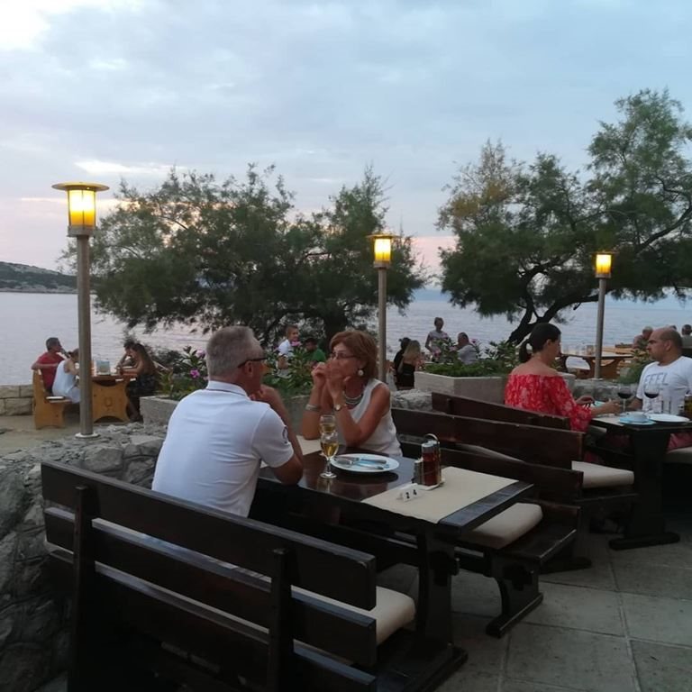 V běžném jídelním lístku restaurace najdete velký výběr čerstvých mořských plodů a dalších mořských specialit, které se na váš stůl dostanou přímo z Jaderského moře. Kromě ryb jsou v nabídce také další masová jídla a oblíbené pizzy. Vyhlášená restaurace se nachází ve skvělé lokalitě dobře dostupné i pro návštěvníky s loděmi a plachetnicemi, protože přímo před restaurací je malé přístaviště. Chutné jídlo, dobrá poloha a přátelský personál ještě více umocní nádherný zážitek z výhledu na moře s neuvěřitelně modrou barvou.