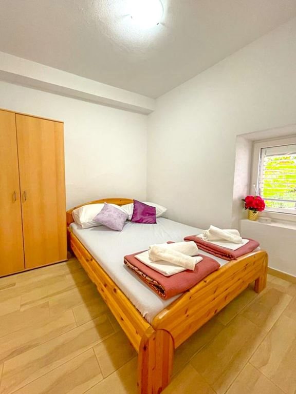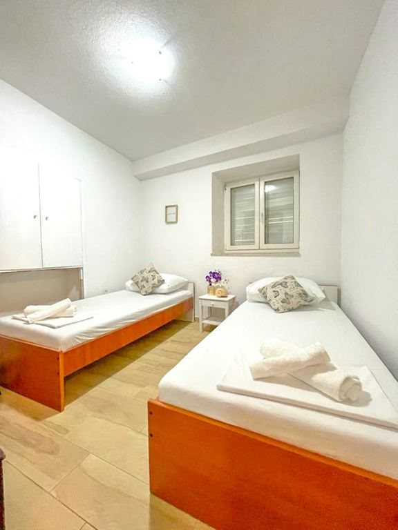 Mari i Kiara vila: Vila Mari i Kiara je pěkně vybavený apartmánový dům v blízkosti kostela, nachází se 50 m od moře a 30 m od centra, lékař a lékárna 300 m, pošta 100 m, sportovní hřiště 650 m. Ve vile nabízíme apartmán pro 4 osoby v 1. patře, ze kterého je pohled na moře i park a který má ložnici se 2 lůžky a rozkládací gauč pro 2 osoby v denní místnosti. Apartmán je vybavený SAT TV, klimatizaci, Wi-Fi, koupelnou se sprchovým koutem a terasou. Parkování se nachází 200 m od vily.