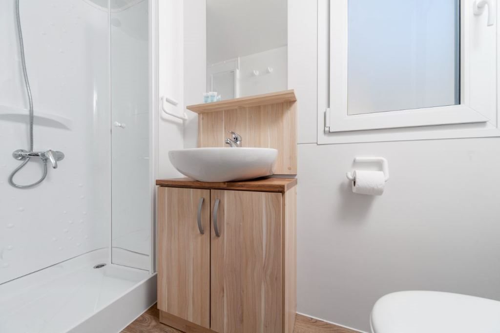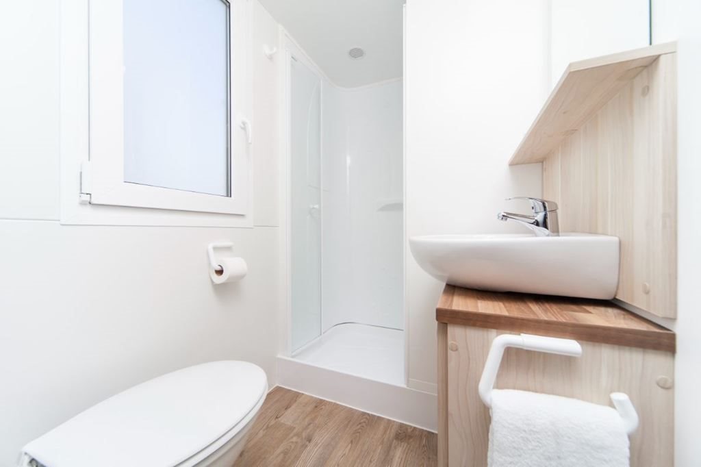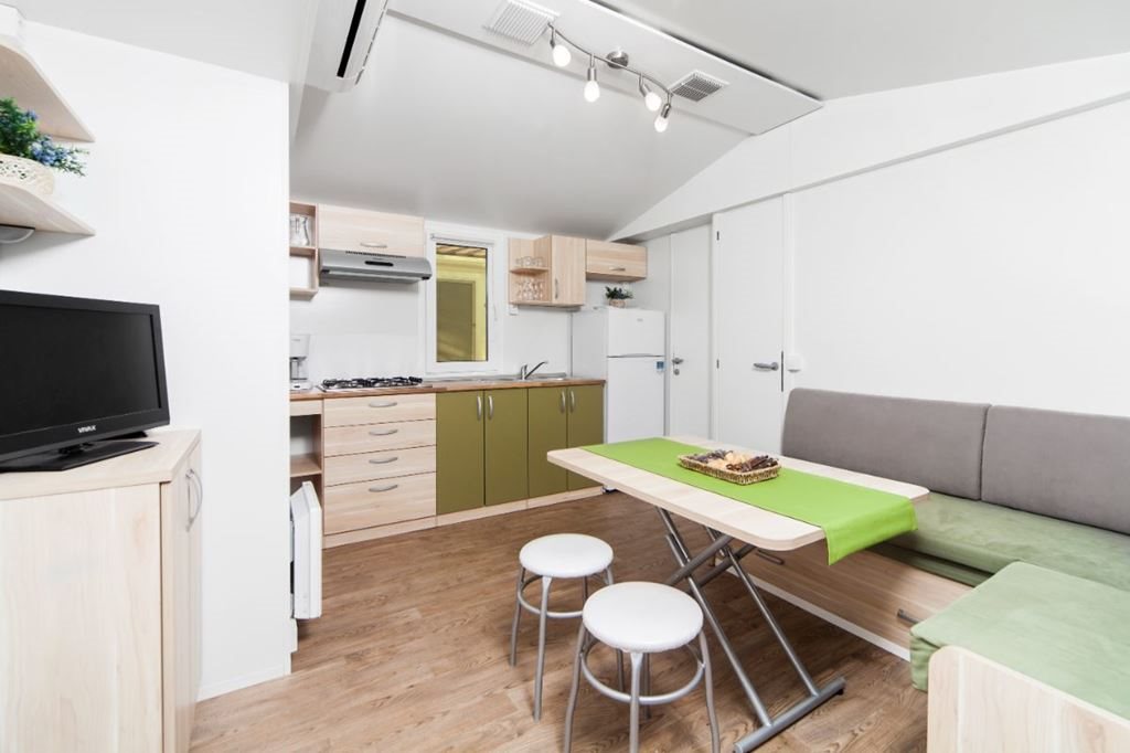 Mobilní chaty se nacházejí 50-100 m od pláže. Pláž je přírodní oblázková, betonová s pozvolným přístupem do moře. Lehátka a slunečníky na pláži jsou k dispozici za poplatek. Na pláži nabídka místních vodních sportů.